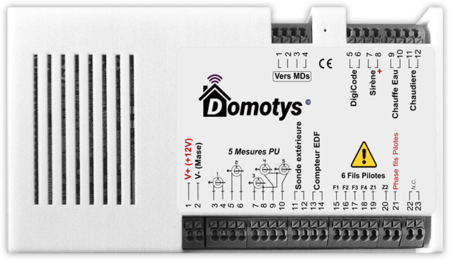 Domotys gère le délestage du chauffage afin de ne pas consommer plus que le calibre compteur ne le permet. Il diffusera alors intelligemment la chaleur sur toutes les pièces (fini les pièces froides).
